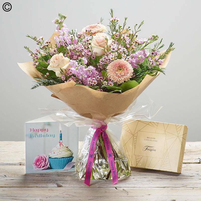 Featuring our Classic Hand-tied, a 115g box of tempting Belgian chocs, and a lovely card, this thoughtful gift set will be the icing on the (birthday) cake!